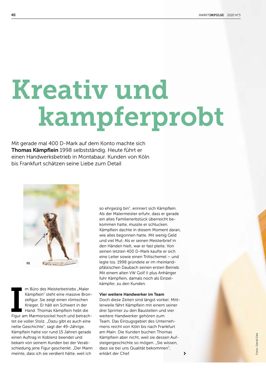 Im Jahre 1998 gründete Thomas Kämpflein mit einem Pkw und einem kleinem Anhänger den Betrieb in Daubach. 2000 zog der Betrieb nach Wirges in den Mühlgraben 11. Zum 01.01.2008 wurden die Räume des ehemaligen Malergeschäft Braun in Montabaur, Ruhrstr. 3a bezogen.